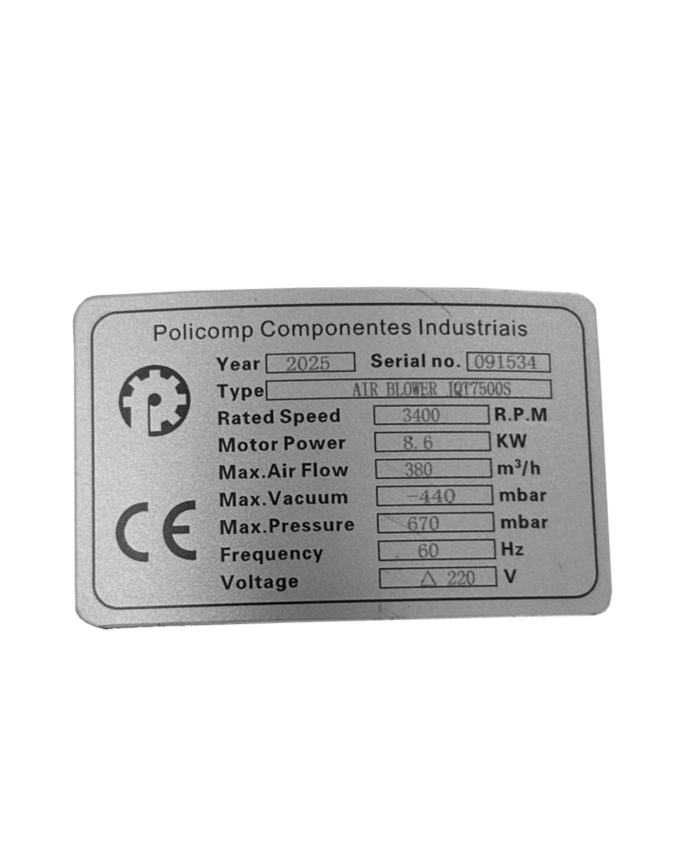 BOMBA VÁCUO/SOPRADOR RADIAL DUPLO ESTÁGIO 8.6KW (11.7CV), 220/380V