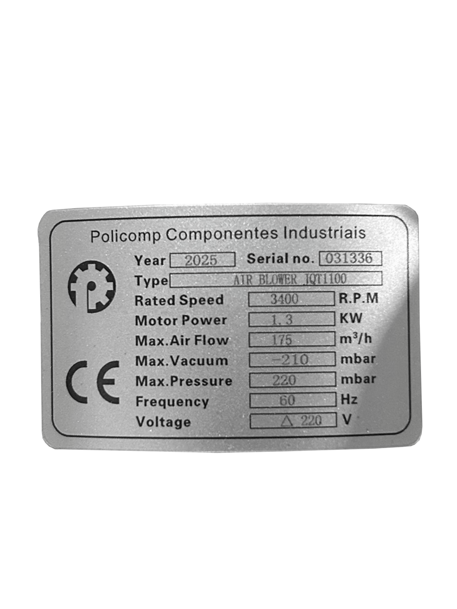 BOMBA VÁCUO (SOPRADOR RADIAL) ESTÁGIO ÚNICO 1.3KW (1.76CV), 220/380V