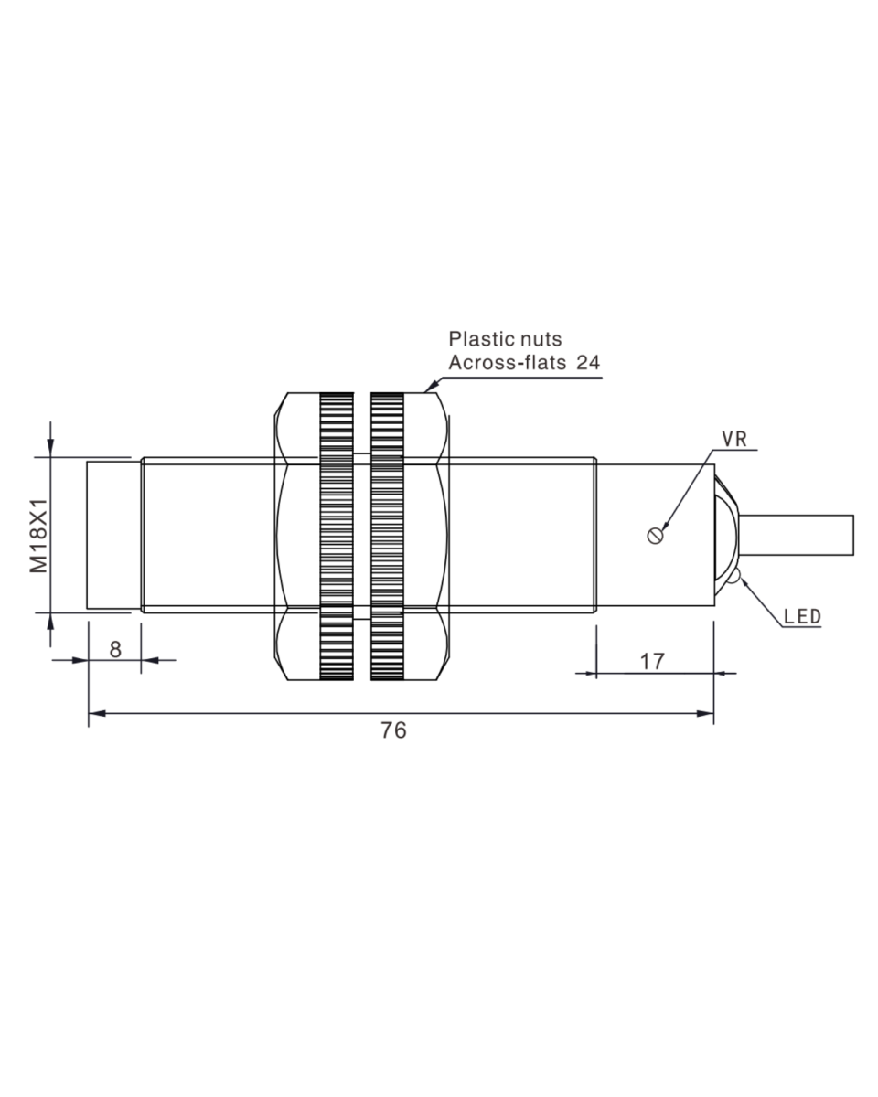 SENSOR PLCKN18-15NO CAPACITIVO CILÍNDRICO, 18 MM DE DIÂMETRO, 15 MM DE DISTÂNCIA DE DETECÇÃO NPN, 3 FIOS, NORMALMENTE ABERTO (NA), 10–30 VDC