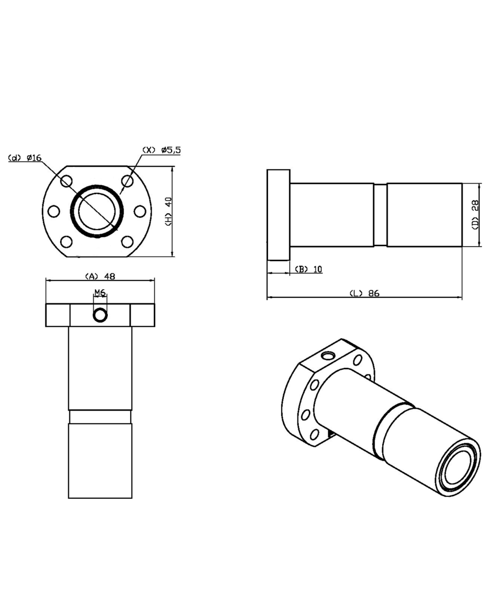 A castanha dupla possui a mesma aplicação que a castanha comum SFU porém apresenta melhor precisão e resistência.– Dureza Superficial: 58 a 62 HRc