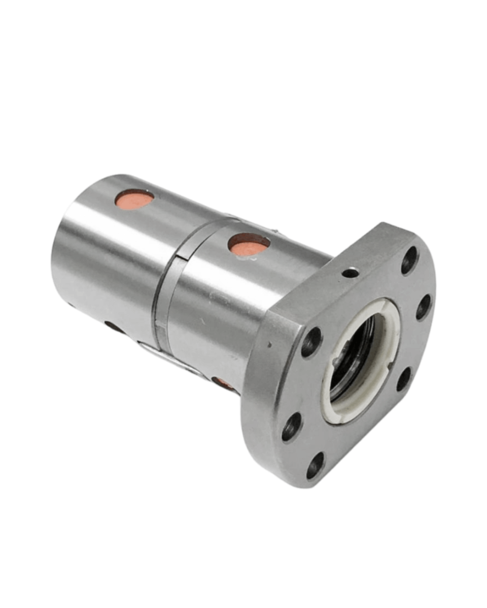 A castanha dupla possui a mesma aplicação que a castanha comum SFU porém apresenta melhor precisão e resistência.– Dureza Superficial: 58 a 62 HRc