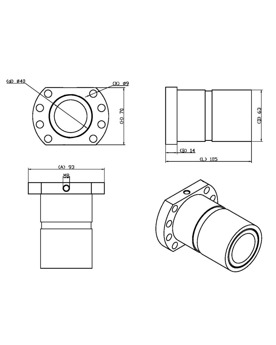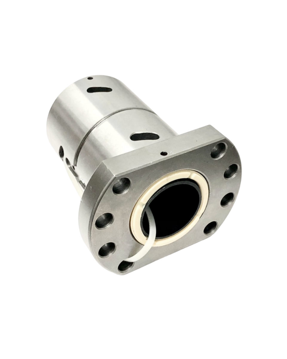 A castanha dupla possui a mesma aplicação que a castanha comum SFU porem apresenta melhor precisão e resistência.– Dureza Superficial: 58 a 62 HRc