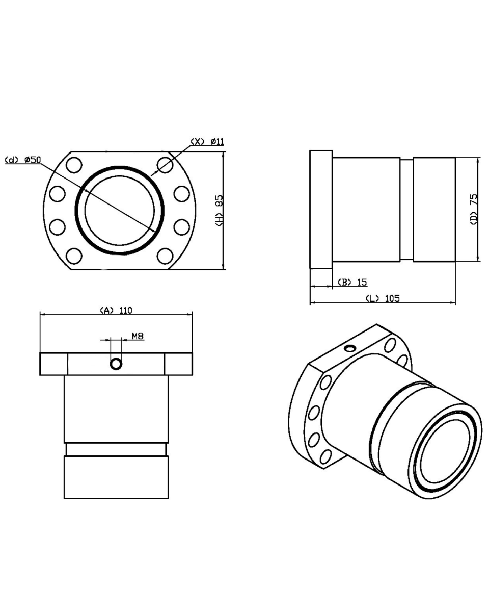 A castanha dupla possui a mesma aplicação que a castanha comum SFU porém apresenta melhor precisão e resistência.– Dureza Superficial: 58 a 62 HRc