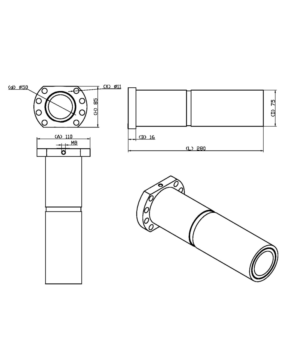 A castanha dupla possui a mesma aplicação que a castanha comum SFU porém apresenta melhor precisão e resistência.– Dureza Superficial: 58 a 62 HRc