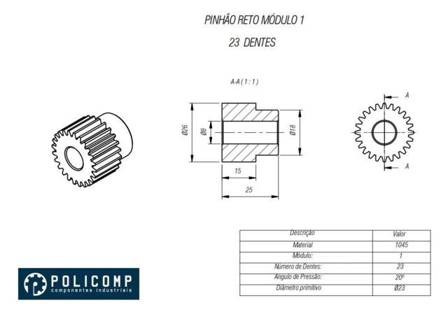 Comprar Agora!Engrenagem dente reto com 23 dentes