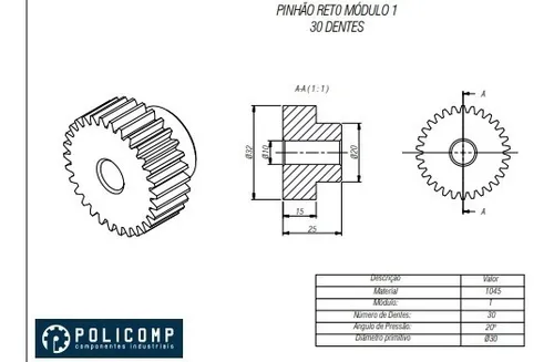 Comprar Agora!Engrenagem dente reto com 30 dentes