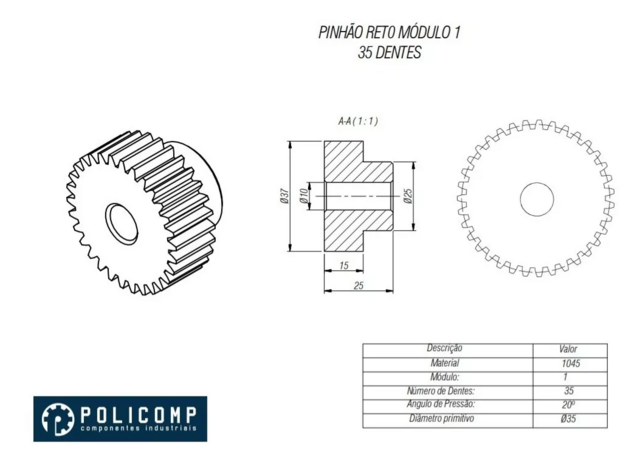 Comprar Agora!Engrenagem dente reto com 35 dentes
