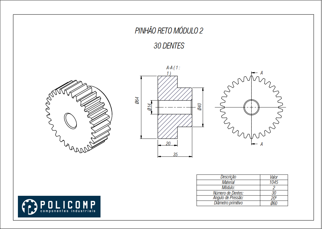 Produtos > ENGRENAGEM DENTE RETOInformações