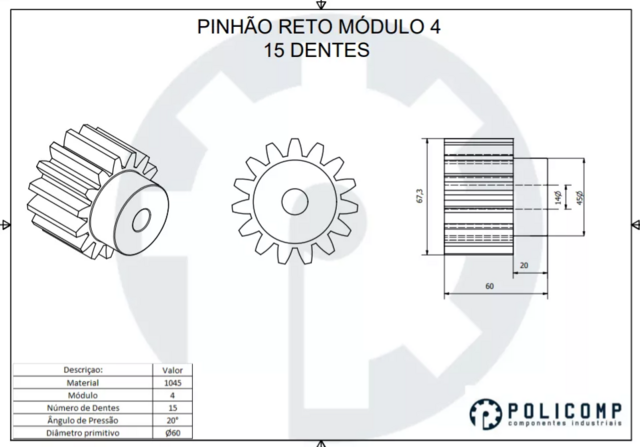 ENGRENAGEM DENTES RETOS MÓDULO 4 Z15