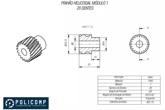 Comprar Agora!Engrenagem helicoidal com 20 dentes