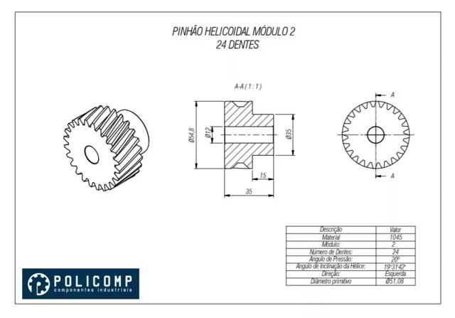 ENGRENAGEM HELICOIDAL, MÓDULO 2 Z24