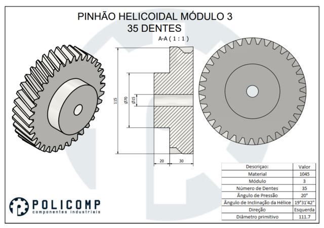 ENGRENAGEM HELICOIDAL, MÓDULO 3 Z35