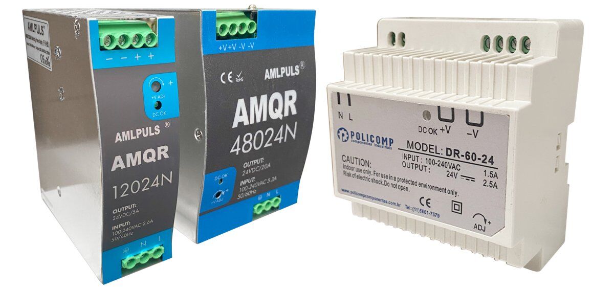 As fontes trilho DIN da Policomp são projetadas para aplicações industriais, oferecendo alimentação estável e segura para diversos equipamentos de automação.