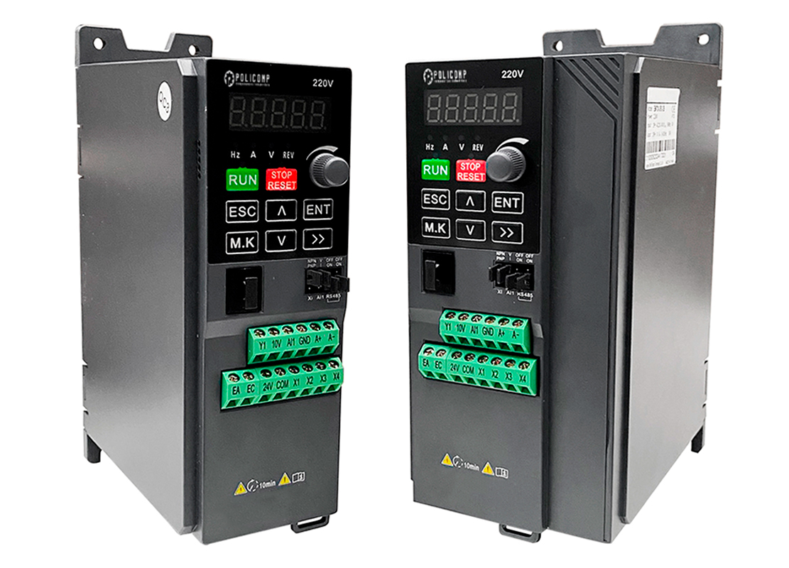 Características principais: Display digital com teclas dedicadas (RUN, STOP, ENT) para operação simples; Entradas e saídas versáteis (analógicas e digitais) para integração com sistemas de automação; Proteções integradas: sobrecorrente, sobretensão, subtensão, sobrecarga e superaquecimento; Função de economia de energia, prolongando a vida útil do motor e reduzindo custos operacionais.