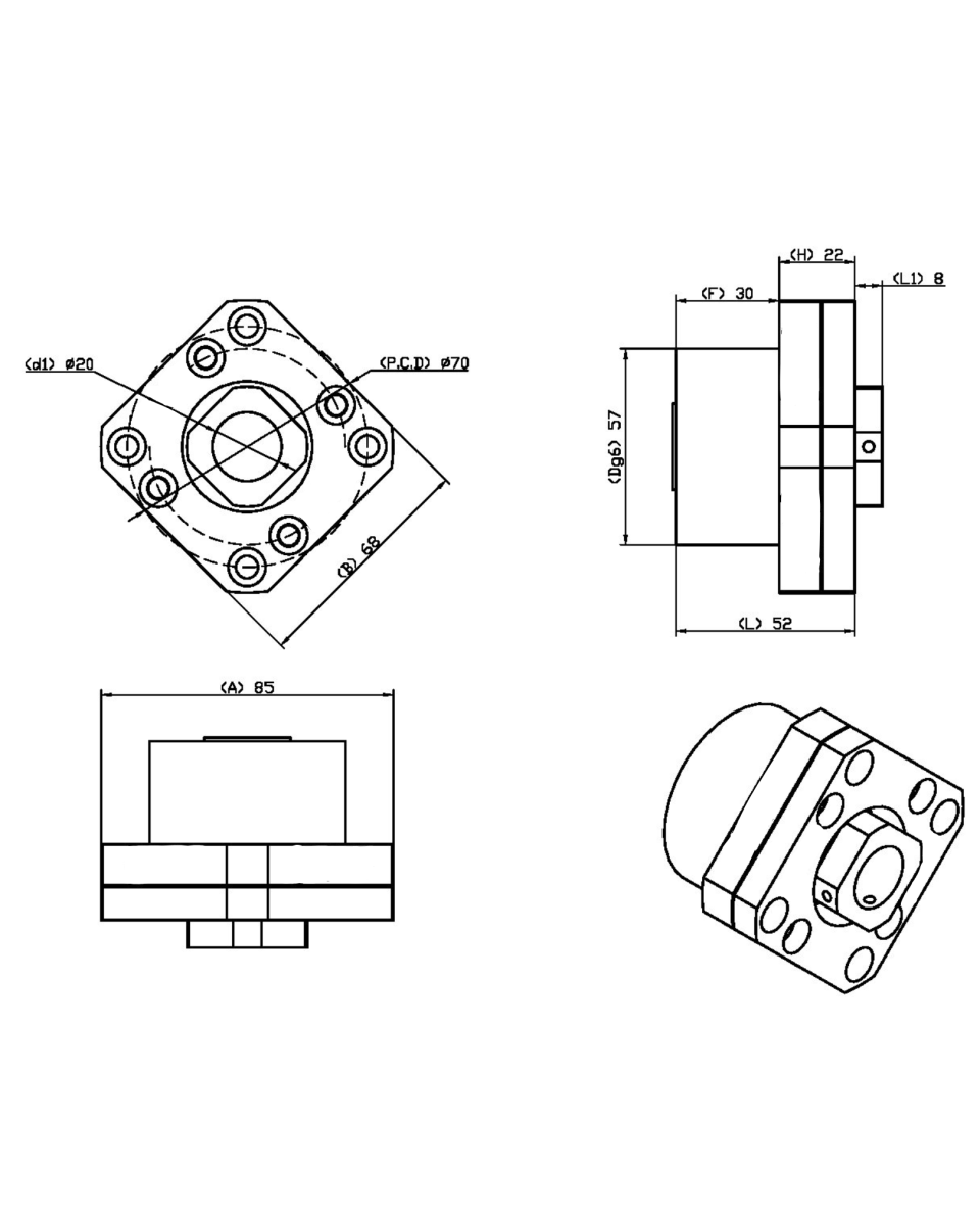 Mancal tipo fixo com rolamento interno para fusos de esferas. Utilizados em fusos com usinagem padrão FKFF.– Montagem com alta precisão e rolamentos angulares rígidos