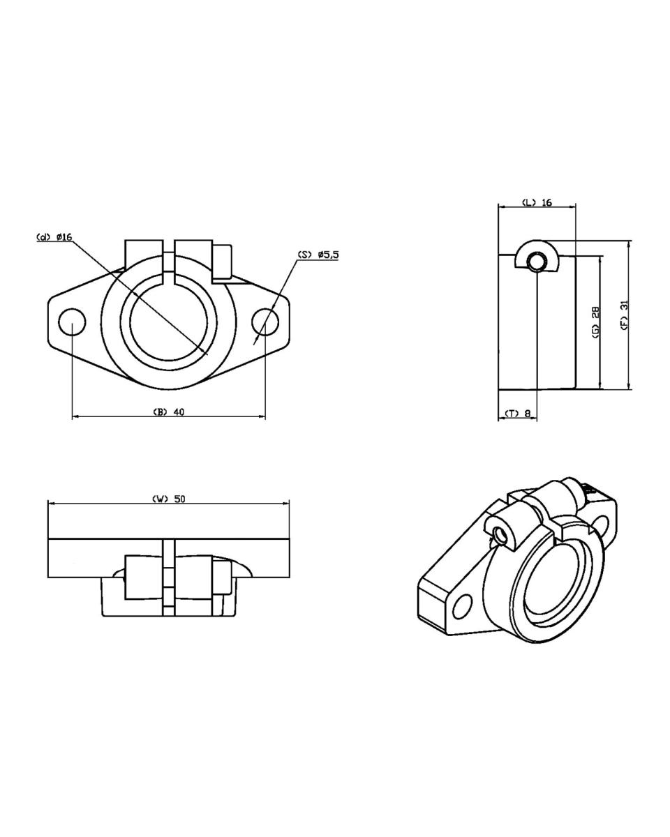 O suporte SHF tem como função fixar eixos lineares a estrutura da maquina, projetado para uso em pequenas máquinas CNC, projetos lineares, impressoras 3D e outros dispositivos que utilizam eixos lineares.– Material: Aluminio