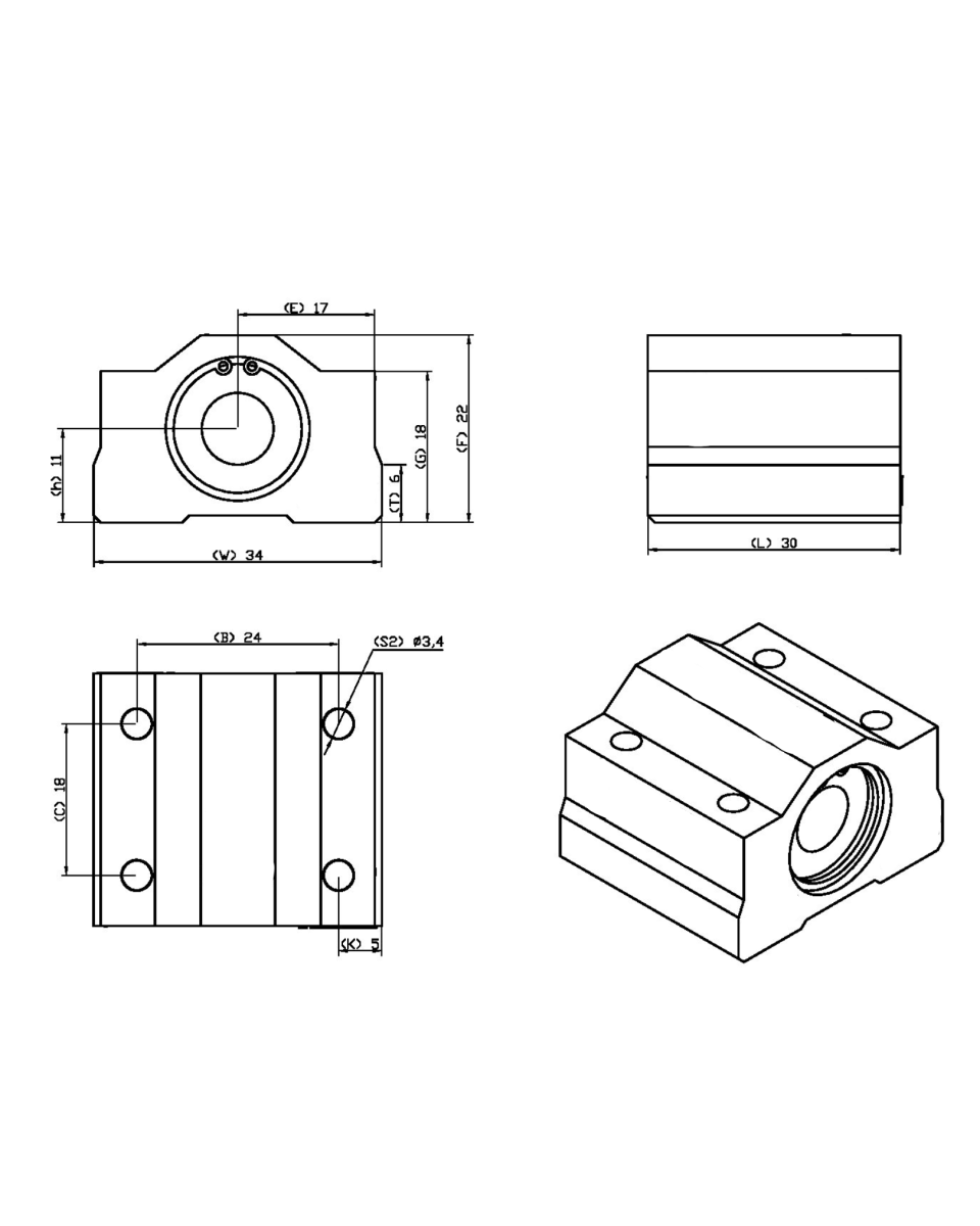O Pillow Block fechado com rolamento LM possui mancal de alumínio, também chamado de casca, sendo ideal para aplicação em eixos lineares sem apoio.